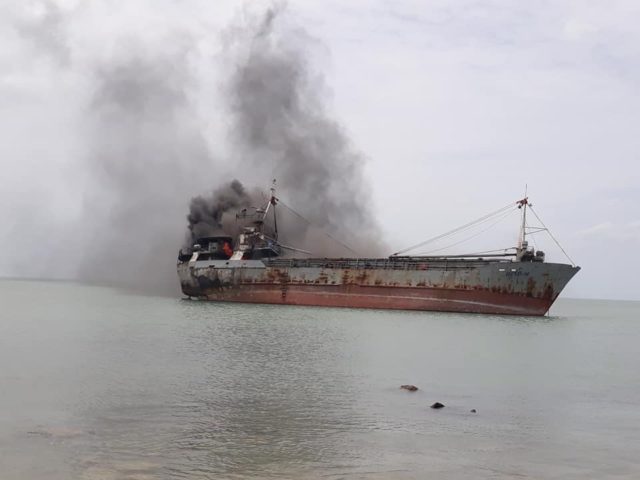 இன்று அதிகாலை 1 மணியளவிலே இத் தீ சம்பவம் ஏற்பட்டதாக கடற்படையினர் தெரிவித்துள்ளனர். இதனையடுத்து கடற்படை தீ அணைக்கும் பிரிவினர் தீயை கட்டுப்பட்டுக்குள் கொண்டுவர காலை தொடக்கம் நீரினை பீச்சி அடித்தாலும் கப்பலின் இயந்திர பகுதி கடுமையாக தீ பற்றியதால் கப்பலிலுள்ள டீசல் தாங்கி Gas என்பன வெடிக்கும் அபாயம் உள்ளது என தெரிவிக்கப்படுகிறது.