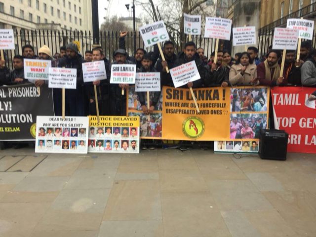 இந்நிலையில், பயங்கரவாத தடைச்சட்டத்தின் கீழ் கைது செய்யப்பட்டு தடுத்து வைக்கப்பட்டுள்ளவர்களையும் காணமால் ஆக்கப்பட்டவர்களையும் உடனடியாக விடுதலை செய்ய பிரித்தானிய அரசு இலங்கைக்கு அழுத்தங்கங்களை கொடுக்க வேண்டும் என ஆர்ப்பாட்டத்தில் ஈடபட்டவர்கள் கோரிக்கைகளை முன்வைத்துள்ளனர்.