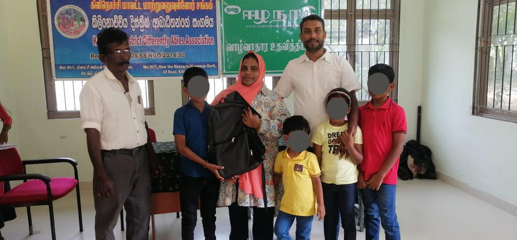 கிளிநொச்சி மாவட்ட மாற்று வலுவுள்ளோர் சங்கத்தின் வேண்டுகோளிற்கிணங்க மனித உரிமைகள் செயற்பாட்டாளர் கீத் குலசேகரத்தின் ஏற்பாட்டில் Mohamed Jameel Fathima Nilufa மற்றும் Shahul Hameed Riyasudeen Mohamed அவர்களின் ரூபாய் ஒரு இலட்சம் நிதிப்பங்களிப்பில் மேற்படி உதவித்திட்டம் வழங்கி வைக்கப்பட்டது.