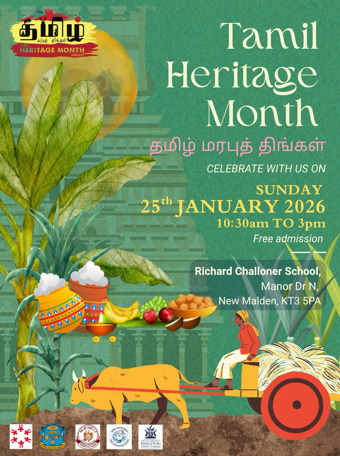அந்தவகையில் கடந்த ஞாயிற்றுக்கிழமை (25.01.2025) தமிழ் தகவல் நடுவம் (TIC)மற்றும் சமூக அபிவிருத்திக்கான மையம் (CCD), கிங்ஸ்டன் நகரசபை, தமிழ் கலாசார கழகம் (ITC) மற்றும் சரே தமிழ் கல்விக்கூடம் ஆகியவற்றின் ஒழுங்கமைப்பில் இலண்டன் நியூ மால்டனில் அமைந்துள்ள றிச்சார்ட் சல்லோனர் பாடசாலையில் (Richard Challoner School, Manor Dr N, New Malden, London) தமிழர் மரபுத்திங்கள் விழாவானது சிறப்பாக நிகழ்த்தப்பட்டது.