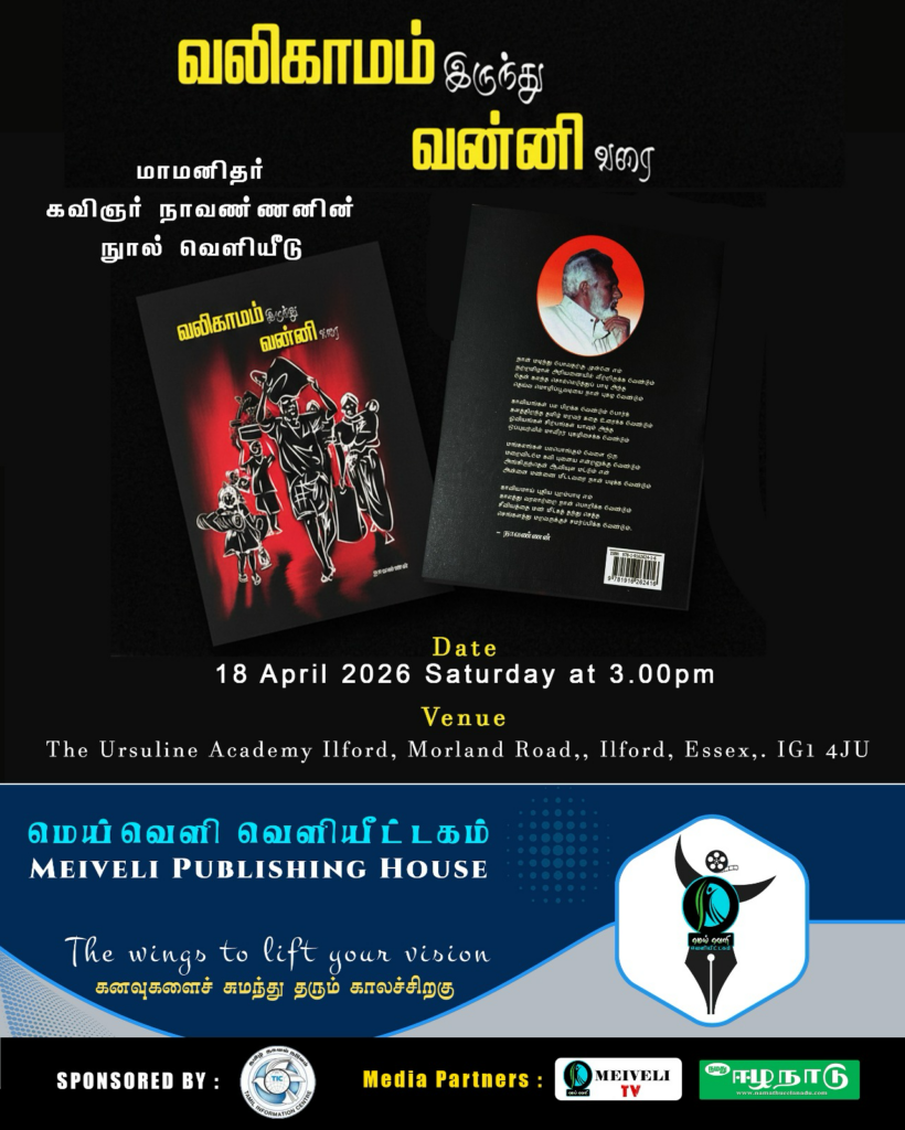 The Tamil literary and cultural community in the United Kingdom will witness an important and meaningful occasion on Saturday, 18 April 2026 at 3:00 PM, as the book “From Valikamam to Vanni” by veteran poet Navannan is formally launched in Ilford. The event will take place at The Ursuline Academy, Morland Road, Ilford, Essex, IG1 4JU.